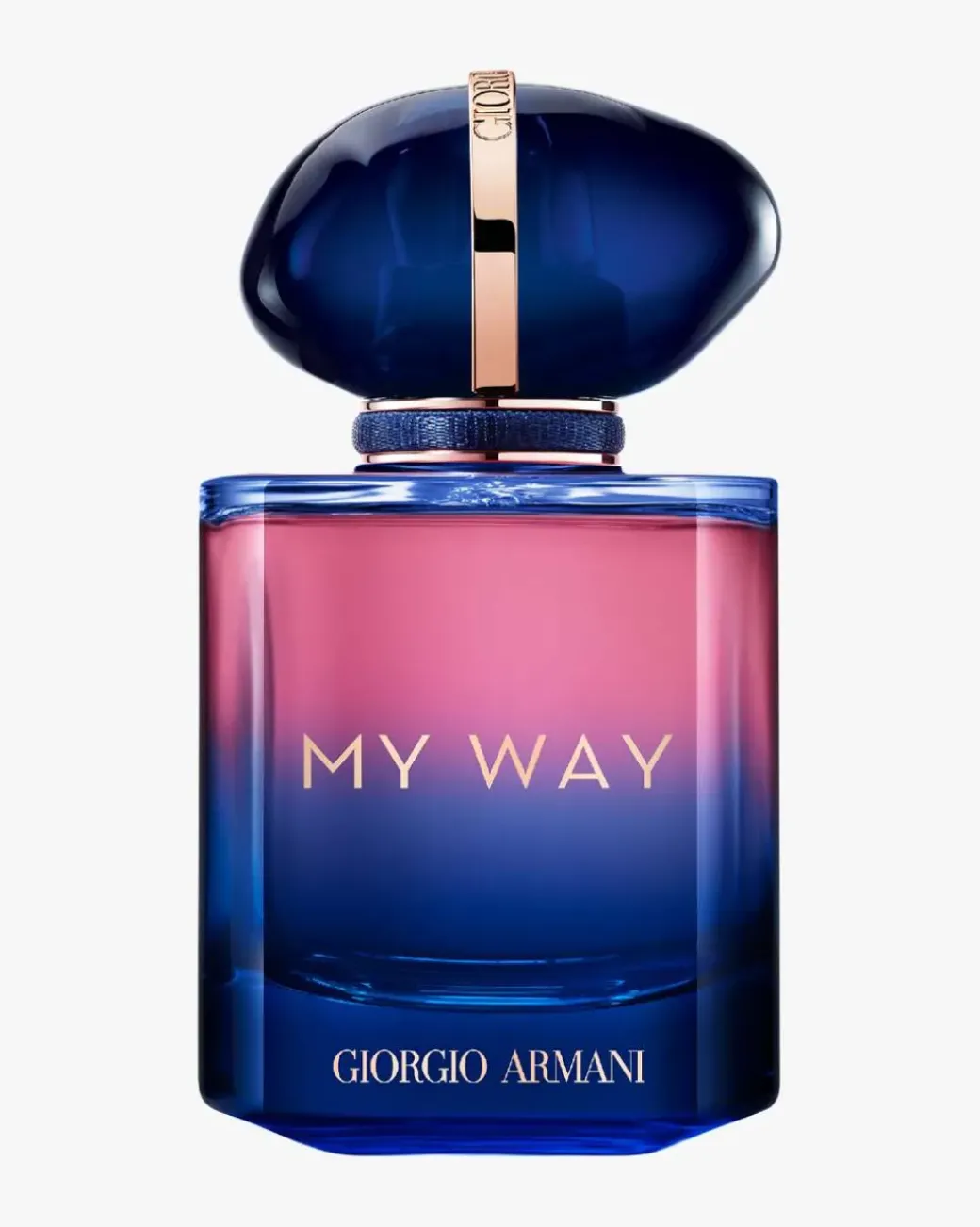 Giorgio Armani My Way Parfum er en invitasjon til en reise mot selvoppdagelse, og fanger den livsbekreftende følelsen av et steg inn i det ukjente. En intens og treaktig pudret bukett skapt av kontrasten mellom den strålende tuberosen og den majestetiske blå bleke irisen, innkapslet i en ny flakong i kontrasterende farger, kledd i toner som går fra blekkblått i bunnen til strålende rosa i halsen.