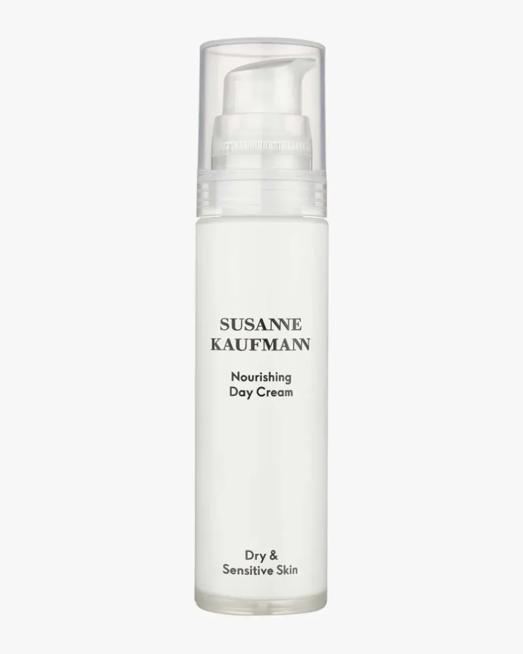 Susanne Kaufmann Nourishing Day Cream er det første steget mot tørr og sensitiv hud. En rik, daglig ansiktskrem som er utviklet for å jevne ut linjer og rynker og fylle på tapt fuktighet. Den er beriket med en unik botanisk blanding av hyaluronsyre, schisandra-fruktekstrakt, jojobaolje og alperoseekstrakt, og bidrar til å beskytte og lindre tørr og sensitiv hud slik at den ser synlig forynget ut. Bivoks og squalanolje fra oliven beskytter mot tørrhet og gjør huden silkemyk å ta på. E-vitaminrik solsikkeolje og tomatekstrakt, kjent for sine antioksidanter fra egenskaper, beskytter huden mot for tidlig aldring. Fuktighetsgivende nypefrøolje, som er rik på næringsstoffer og vitaminer, forbedrer hudens elastisitet slik at den ser glattere og fastere ut.