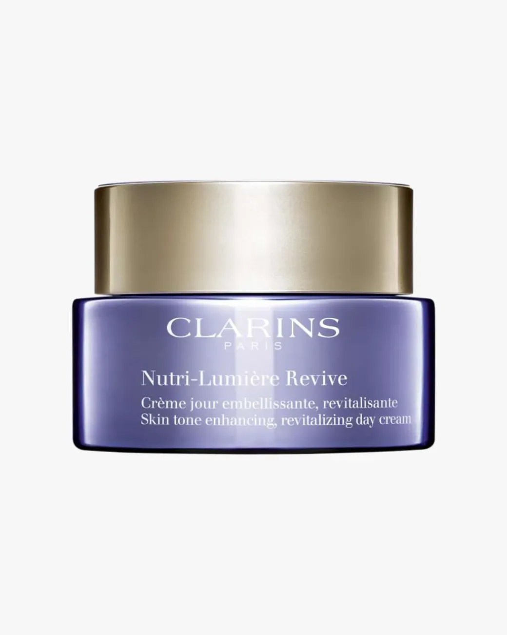 Clarins Nutri-Lumiere Revive. Nutri-Lumière er en hudpleieserie fra Clarins som gjenoppretter en ungdommelig glød i en underernært hud. Nutri-Lumiére Revive Day Cream er en dagkrem som jobber målrettet mot å korrigere gultoner, gi glød og tilføre intens næring. Kremen inneholder en kraftfull duo av aktive ingredienser – økologisk ekstrakt fra hestekastanjeblomsten og ekstrakt fra selve nøtten til hestekastanjetreet. Denne sterke duoen maksimerer hudens næringsopptak og etterlater huden næret, komfortabel og glødende med en fornyet vitalitet. Anbefales for 60+. Passer alle hudtyper.
