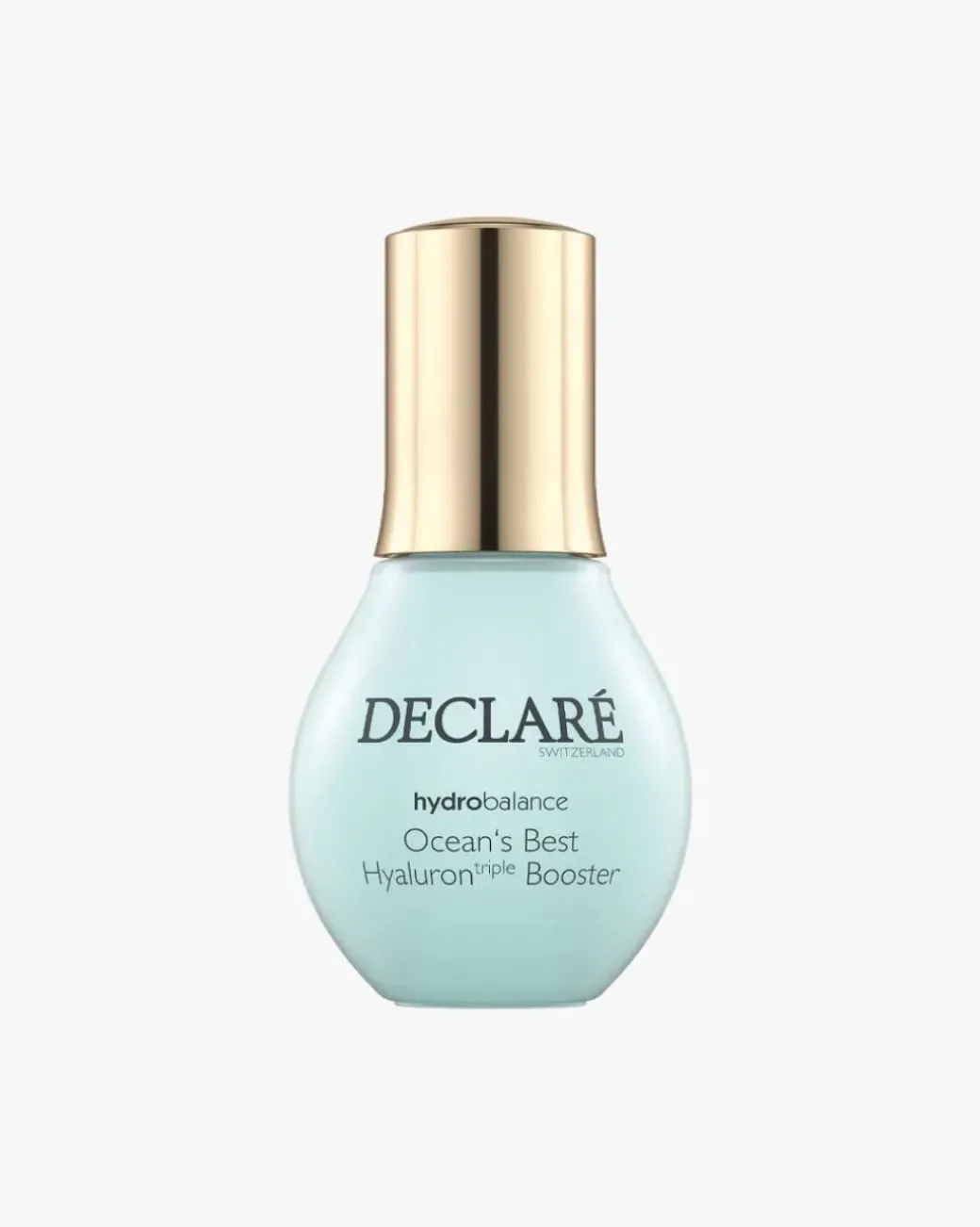 Declare Ocean’s Best Hyalurontriple Booster. Den optimale kombinasjonen av tre typer hyaluronsyrer som fukter og «plumper» ut fine linjer! 24-timers fuktighetsgivende effekt. Resultatet er en deilig myk hud, mindre synlige linjer og ny glød!