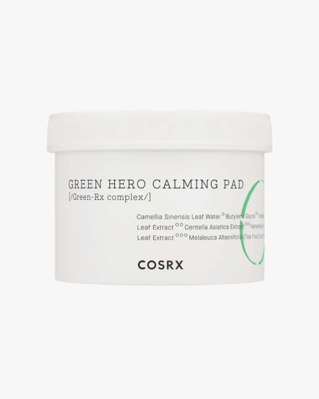 COSRX One Step Green Hero Calming Pad med 75% grønn te vann som fukter godt og virker anti-inflammatorisk. Inneholder også 0.25% PHA-syre som eksfolierer mildt og “Green-Rx Complex” som bidrar til å roe ned huden og rense i dybden. Padsene passer for daglig bruk, så enkelt og så effektivt. Få fuktet, beroliget og balansert hud med kun et sweip. Passer alle hudtyper, spesielt god til sensitiv og irritert hud. Inneholder 70 pads som holder seg fuktige over lengre tid. Inneholder 70 stk.