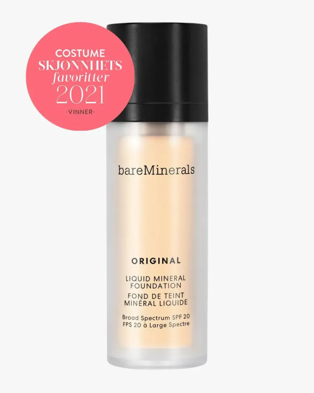 bareMinerals Original Liquid Mineral Foundation er inspirert av den bestselgende Original Loose Mineral Foundation. Produktet er laget med minimalt av ingredienser. Uten silikon, parabener, talkum og olje. Den minimerer synligheten av porer, rødheter og andre ufullkommenheter, samtidig lar dette produktet huden din puste. Tilgjengelig i 30 farger for hver hudtype og tone.