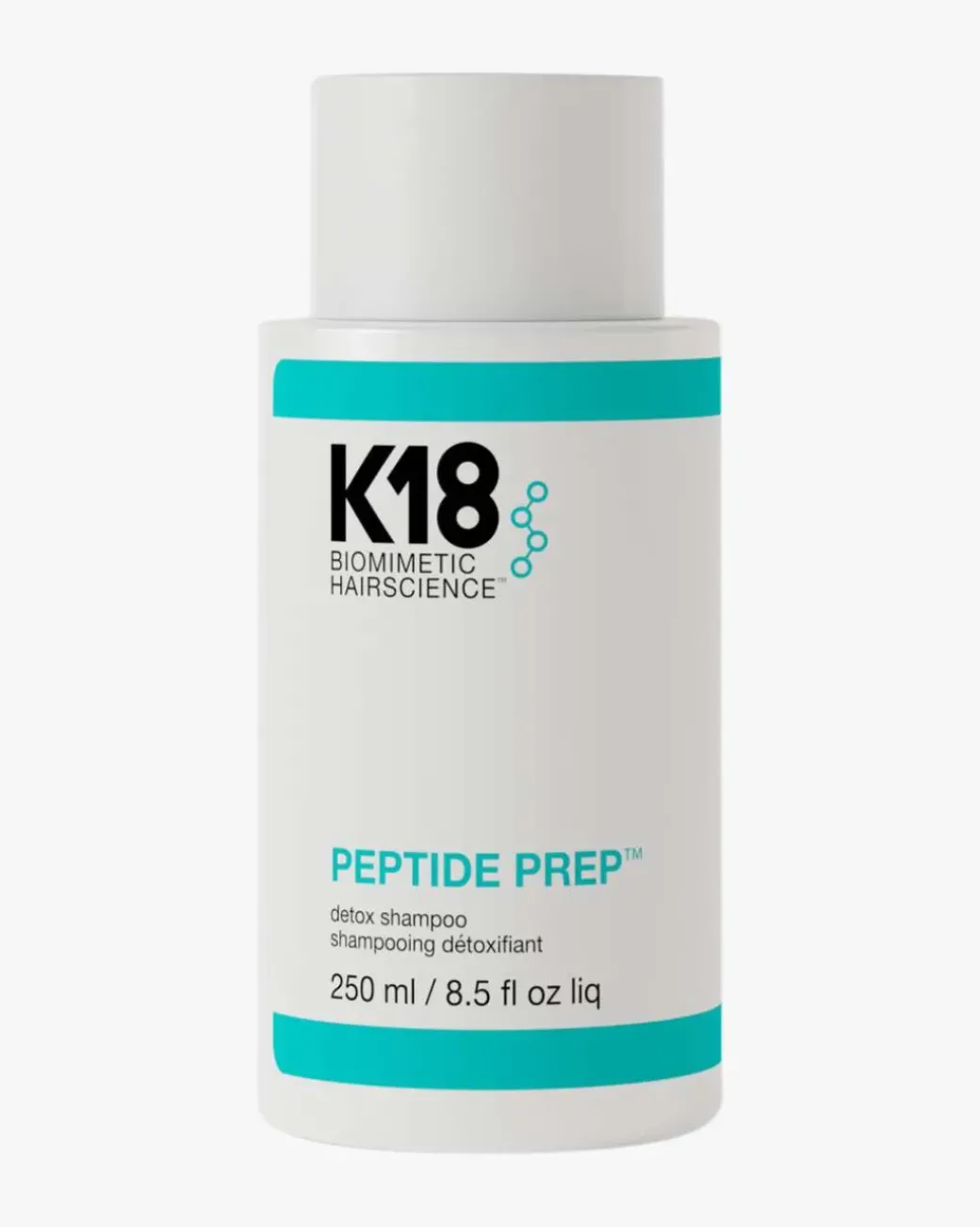 K18 Peptide Prep Detox Shampoo er en fargebevarende, dypt rensende shampoo som fjerner produktrester for å gi håret det beste utgangspunktet for K18Peptide™, uten å strippe håret fra fuktighet.