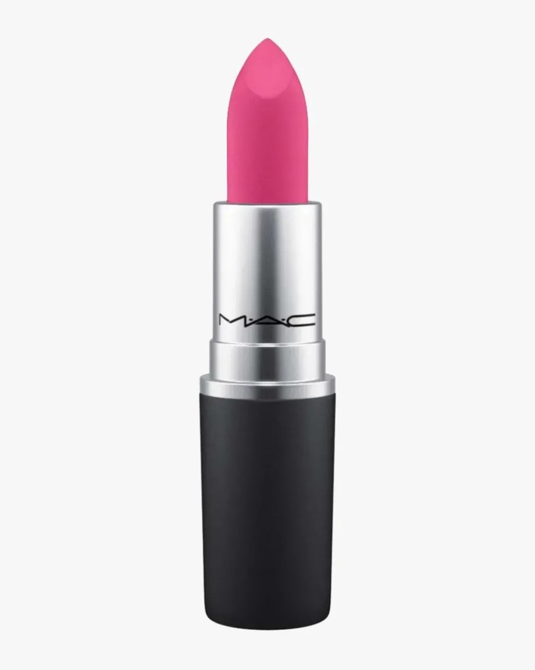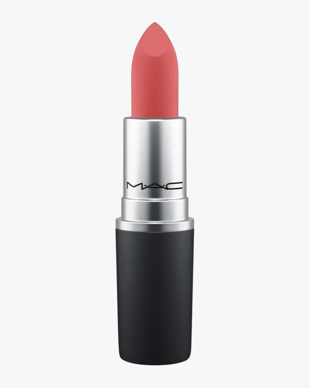 MAC Cosmetics Powder Kiss Lipstick ble utviklet for å gjengi en backstage teknikk hvor man blander ut kantene av en matt leppestift for en disig effekt. Med fuktgivende pudderpigmenter føles den som en fuktgivende leppebalsam, samtidig som den gir en fantastisk matt farge. Resultatet er det matte looket til en klassisk matt leppestift, men med en myk følelse som en leppebalsam.
