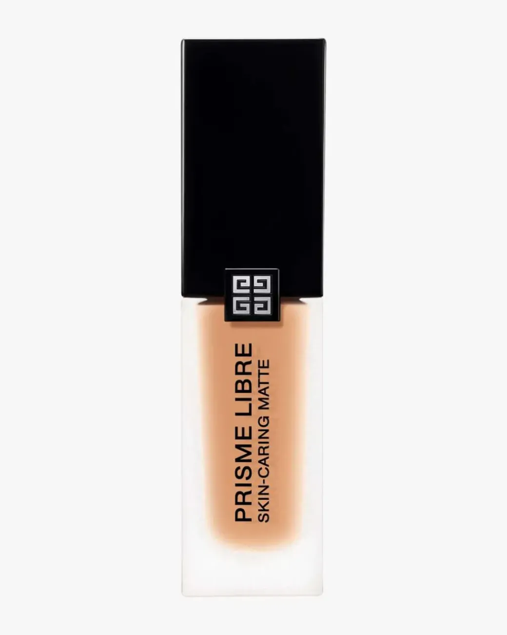 Givenchy Prisme Libre Skin-Caring Matte Foundation, Givenchys’ første 24-timers foundation med hudpleiefordeler og en strålende, matt finish. Den består av 97% naturlige ingredienser, og skaper en feilfri hud umiddelbart og over tid. Huden blir umiddelbart matt, og ujevnheter og porene reduseres. Dag etter dag forbedres hudens kvalitet, samtidig som fuktighetsnivået i huden opprettholdes. Langvarig og byggbar dekkevne som føles fjærlett på huden.