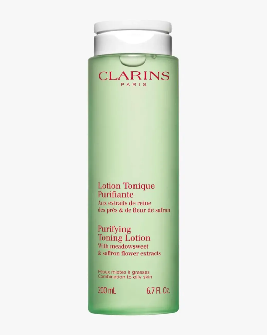 Clarins Purifying Toning Lotion er den perfekte toneren for å fjerne sminke fra kombinert til fet hud. Denne toneren er beriket med aktive ingredienser som mjødurt-ekstrakt, som begrenser overflødig talgproduksjon, og trollhassel-ekstrakt som rengjør og strammer porene. Formelen inneholder også Clarins’ unike [Microbiota Complex], som er en kombinasjon av polyfenoler fra safranblomster og prebiotika, og bidrar til å opprettholde hudens naturlige balanse.
