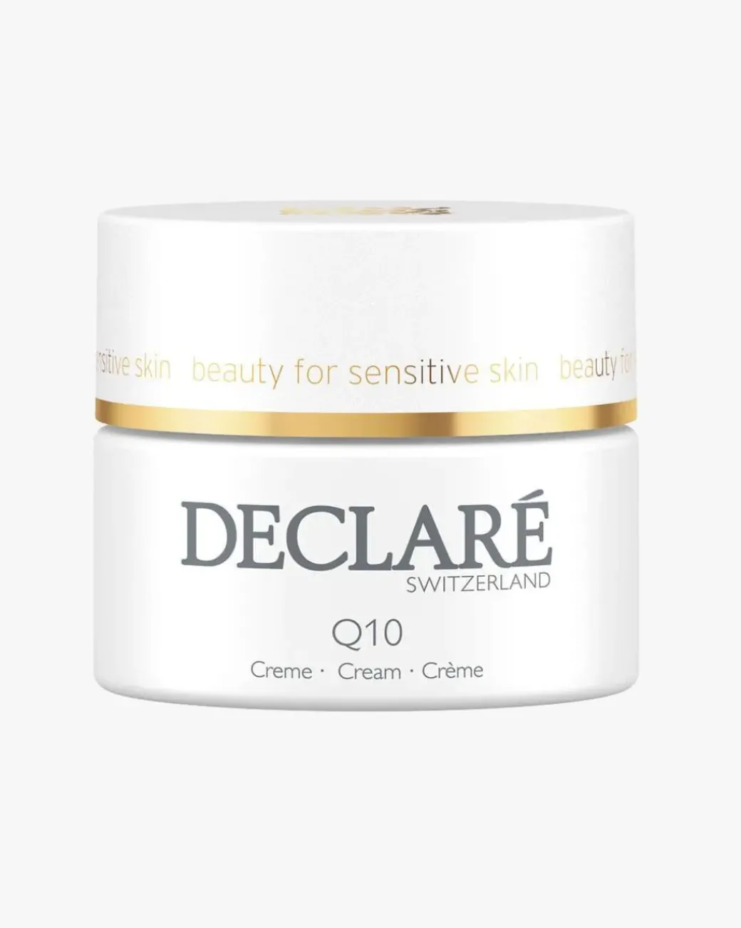Declare Q10 Cream er en dagkrem som gir fuktighet, beskytter, glatter ut og strammer opp huden. Denne oppstrammende kremen inneholder Q10 enzymet som hjelper huden å ytterligere fornye og forbedre cellenes funksjon og forhindrer fortidlig aldring. Resultatet er et ungdommelig og strålende utseende.