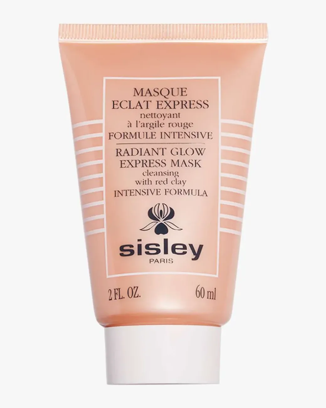 Sisley Radiant Glow Express Mask. Masque Eclat Express er en rensemaske som inneholder rød leire som umiddelbart etterlater huden med en vakker glød. Leirens absorberende evne, kombinert med planteekstrakter (gulrot, rød vinranke og nype) og essensielle oljer (rosmasrin og kamille) bidrar til å eliminere urenheter som gjør at huden ser blass ut, samtidig som huden renses. Masque Eclat Express har en myk, behagelig konsistens som ikke tørker eller gir den ubehagelige stramme følelsen på huden. Etter tre til fem minutter er huden ren og glansfull.