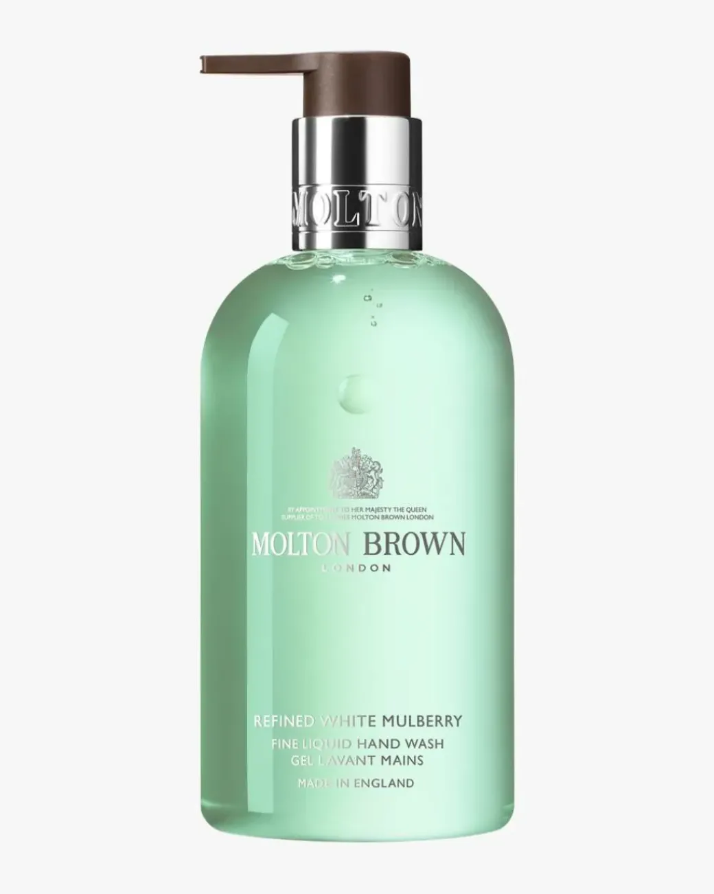 Molton Brown Refined White Mulberry & Thyme Hand Wash. Friske urtenoter fornyer sansene og etterlater hendene delikat parfymerte.