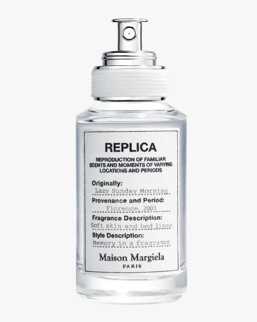 Replica-kolleksjonen samler ikoniske dufter og duftlys som har den universelle kraften til å trigge personlige øyeblikk, personlige historier som lever eller skal leves. Maison Margiela er tro mot sin ‘creative collective’-tilnærming, og samarbeider med de beste parfymørene. De er utvalgt for sin evne til å knytte minner til dufter, og stimulert av den kunstneriske fremførelsen av å komponere en duft som en universell invitasjon til å våkne, feire og dele uforglemmelige følelser.