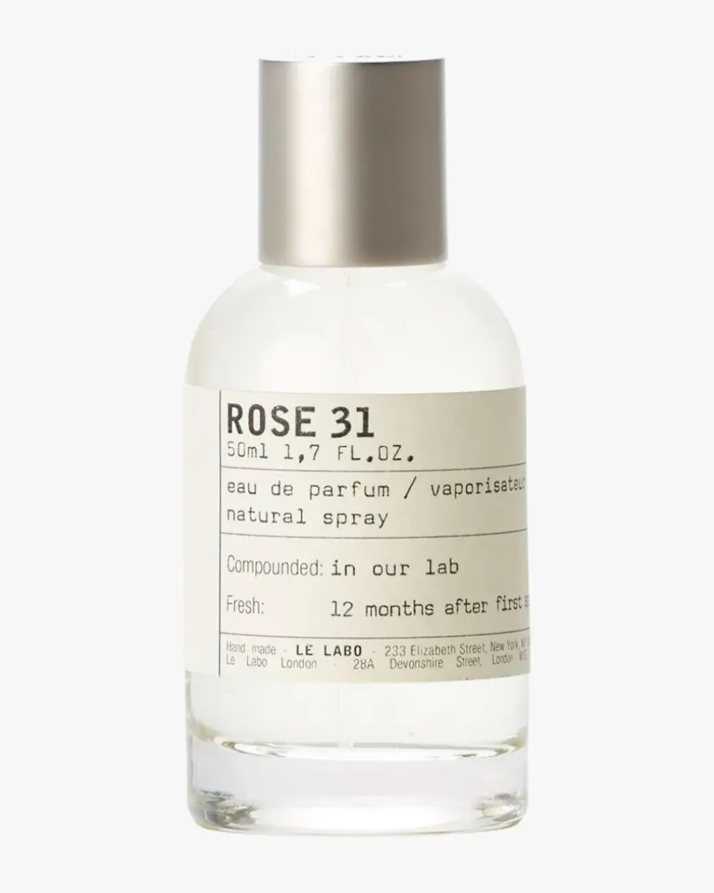 Le Labo Rose 31 Eau de Parfum har som mål om å forvandle den berømte Grasse Rose, et symbol på sensualitet og grenseløs feminitet, til en selvsikker viril duft som kan brukes av menn og kvinner. Duften veksler mellom å være feminin/maskulin med den forvirrende tvetydigheten til centifolia-rosen, som raskt plukkes opp av varme krydder- og trenoter som spisskummen, olbanum, sedertre og rav. I bakgrunnen bidrar sensualiteten til gaiactre og cistus, fremhevet av en distinkt fysisk animalsk note, til å gi duften en mystisk følelse. Toppnoter: Rose og Spisskummen. Hjertenoter: Rose, Vetiver og Seder. Bunnoter: Moskus, Guaiac wood, Agarwood, Olibanum og Labdanum.