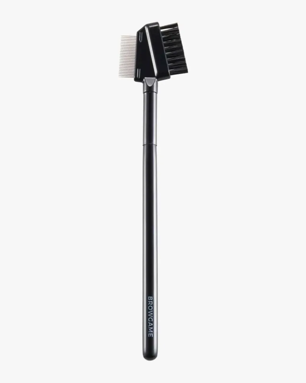 Browgame Cosmetics Signature Combo Brow Brush er en 2-i-1 børste, ideel for å gre brynshårene og kamme gjennom øyevippene. Den fleksible, syntetiske børsten kammer brynene på plass og skaper volum og gir en effekt av buskete bryn. Dette verktøyet kan også brukes til å blande inn brynfarge som allerede er påført. Det faste stålet skiller vippene og fjerner klumper med overflødig mascara. Det kan også brukes på brynene for å skape en fresh look. En viktig verktøy for en fin og vedlikehold utseende.