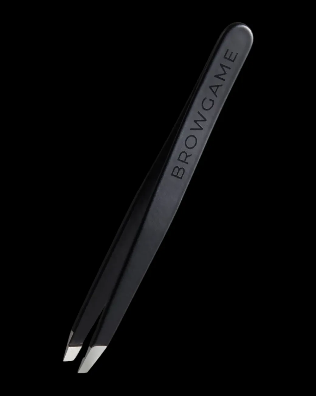 Browgame Cosmetics Signature Slanted Tweezers er perfekte vinklede pinsetter av høyeste kvalitet med en veldig presist tupp som gir enkel og komfortabel napping. Blackout-modellen har et mykt berøringsgummigrep for en behagelig følelse og optimal kontroll av pinsetten. Håndlaget i Italia, vil den fine spissen enkelt ta tak i selv de korteste hårene rett ved roten uten at de brekker.