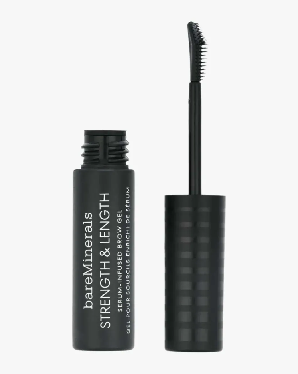 bareMinerals Strength & Length Brow Gel er en vegansk øyenbrynsgelé beriket med et plantebasert serum som farger, former og definerer samtidig med å fremme synlig fyldigere øyenbryn over tid. Den intuitivt vinklede påføringspenselen børster gelen gjennom øyenbrynene for en naturlig definert og fyldig effekt.