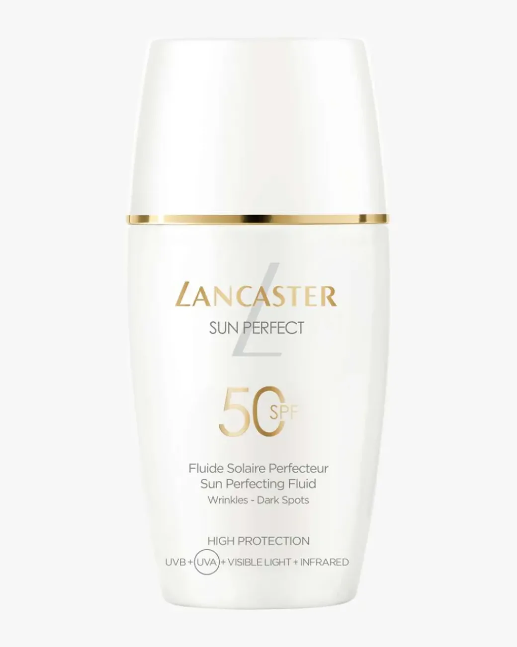 Sun Perfect er Lancasters mest avanserte solserie, som kombinerer hudpleie mot aldringstegn med solbeskyttelse og kan brukes året rundt. Sun Perfect Sun Perfecting Fluid SPF50 er basert på Lancasters eksklusive og avanserte Full Light-teknologi, som beskytter mot 100% av solstrålingen*, samt Lancasters egen anti-aging-teknologi, det naturlige Sun Repair-systemet og Glow Booster-komplekset. Sammen gir de huden en bredspektret beskyttelse mot UVB- og UVA-stråling, synlig lys og infrarødt lys, som bidrar til å beskytte huden mot solskader og styrker hudens barriere. Produktet forebygger og korrigerer rynker, fine linjer og pigmentflekker. I tillegg forbedres hudens fuktighetsinnhold og struktur, noe som fremhever hudens naturlige glød. Huden ser jevnere og mer ungdommelig ut, med en naturlig glød året rundt. Dette oppgraderte produktet er både rent og havvennlig, virker beroligende på huden og tilfører fuktighet som varer lenge. Dette solproduktet fra Lancaster har en lett og superbehagelig konsistens som gjør det lett å påføre. Det smelter umiddelbart inn i huden og føles ikke klisset eller fett. Den lett fargede sammensetningen visker ut skjønnhetsfeil og gir en jevn hud med en pudret, matt finish. Huden ser ganske enkelt feilfri ut. Dette solproduktet til ansiktet trekker raskt inn i huden og fungerer perfekt som underlag for sminke.