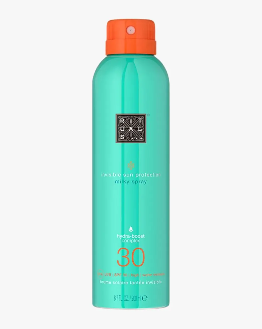 Rituals The Ritual of Karma Sun Protection Milky Spray SPF 30 er en fuktighetsgivende lotion spray med SPF 30 som ikke etterlater hvite flekker, og absorberes raskt av huden uten å bli klebrig. Kroppen din beskyttes mot solskader fra UVA- og UVB-stråler og tilføres næring i én enkelt påføring takket være Hydra-Boost Complex. Dette unike fuktighetsgivende komplekset inneholder squalane, aloe vera og alger, som alle er kjent for å bidra til å lindre dehydrert hud og gjenopprette smidighet. Lotion sprayen gir usynlig, konsistent og bredspektret beskyttelse. Beriket med hvit te, E-vitamin og lotusblomst.