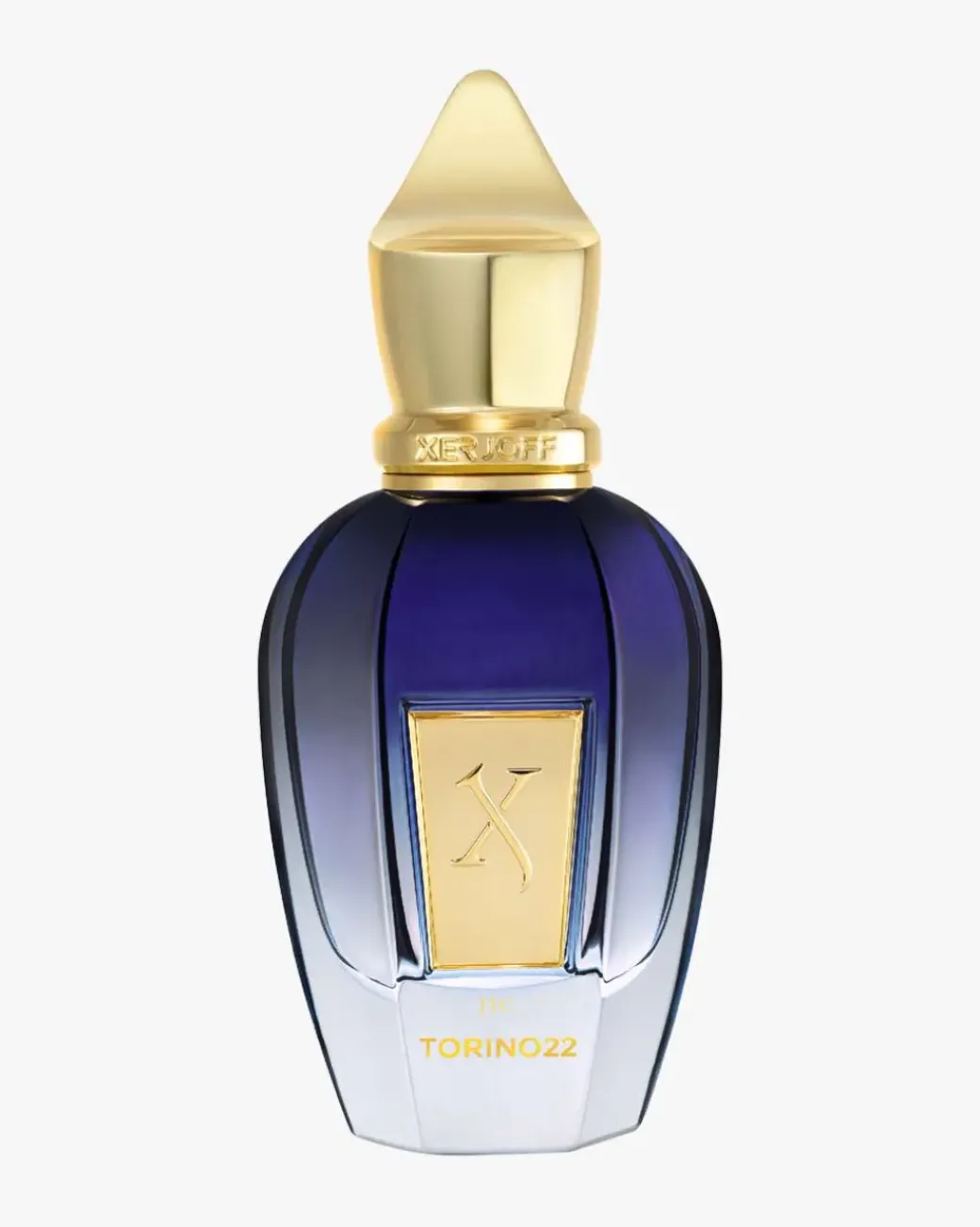 Xerjoff Torino 22 Eau de Parfum. Den grønne og friske åpningen av Torino 22, med balsamiske og krydrede noter av eukalyptus og bergamott, glir elegant inn i et hjerte av fløyelsmyk salvie. Duften avsluttes med varm musk og harpiksholdig tørt tre, som gir en uovertruffen og spennende finish.