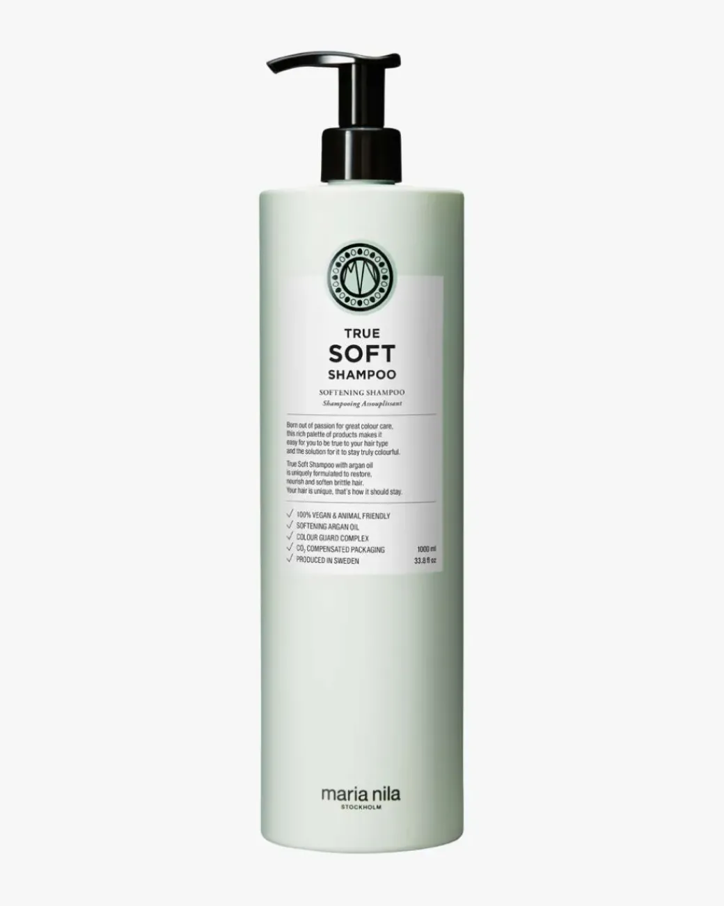 Maria Nila True Soft Shampoo er en shampoo for tørt hår som mykgjør, fukter og styrker håret ditt samtidig som den reduserer frizz og statisk elektrisitet. Laget med glattende arganolje som bevarer fuktigheten og tilfører styrke og glans til håret ditt. True Soft Shampoo har en blomsterduft av lilje, sjasmin og rose. Colour Guard Complex bevarer fargen ved å beskytte håret ditt mot UV-stråling og frie radikaler.