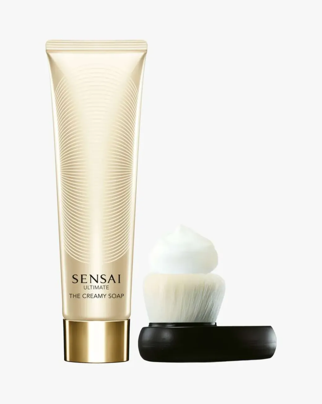 Sensai Ultimate The Creamy Soap en kremet såpe med en original rensebørste som gir et delikat skum, hvorpå urenheter fjernes og hudens indre skjønnhet kommer fram.