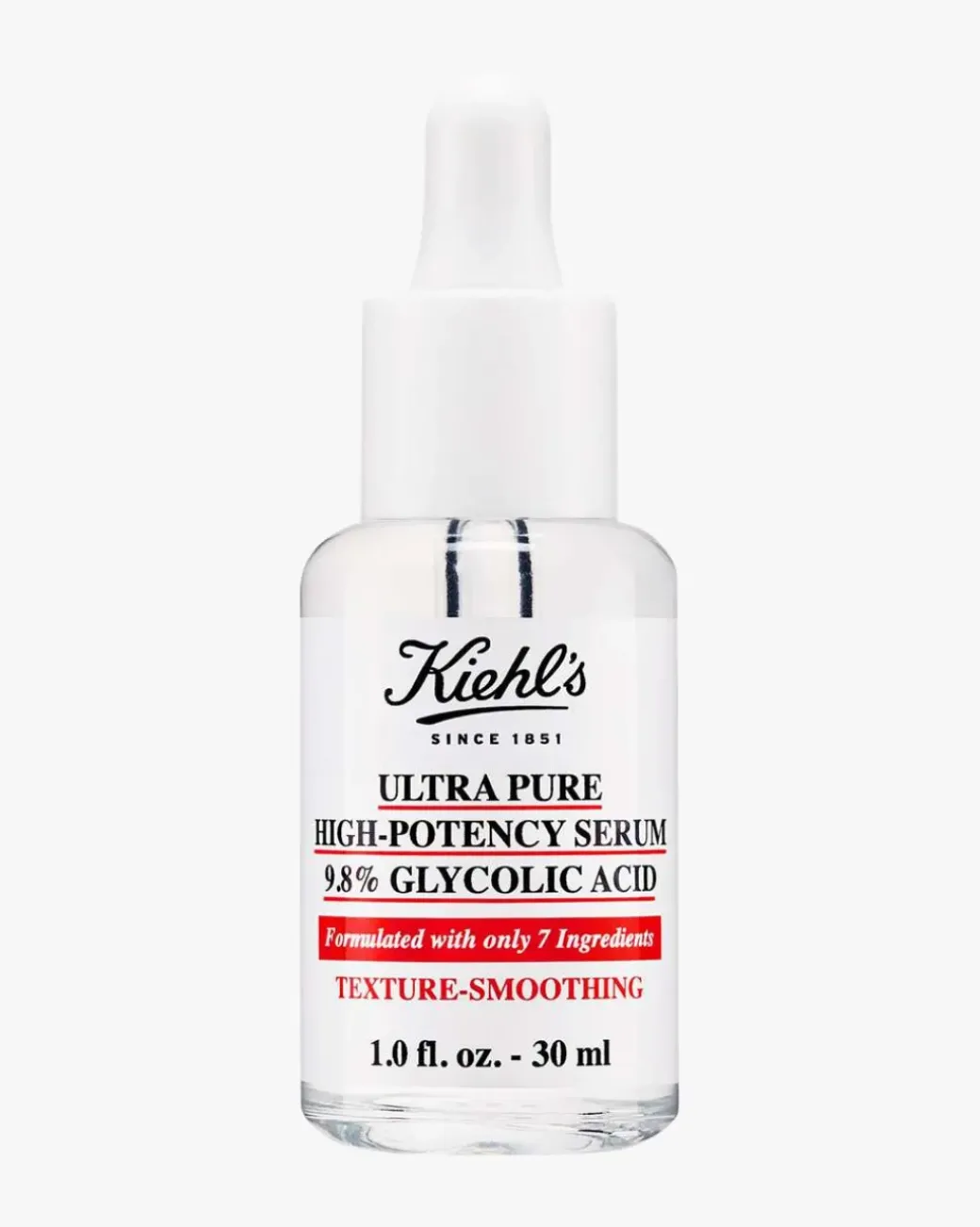 Kiehl’s Ultra Pure High-Potency Glycolic Acid 10 % Serum er et skånsomt eksfolierende glykolsyreserum synlig øker gløden i huden og reduserer ujevn hudtekstur i løpet av 1 uke. Kiehl’s enkle, men effektive serum er konsentrert med glykolsyre, er laget med kun 7 ingredienser og bidrar til synlig forfinet hudtekstur og et glatt, strålende utseende.